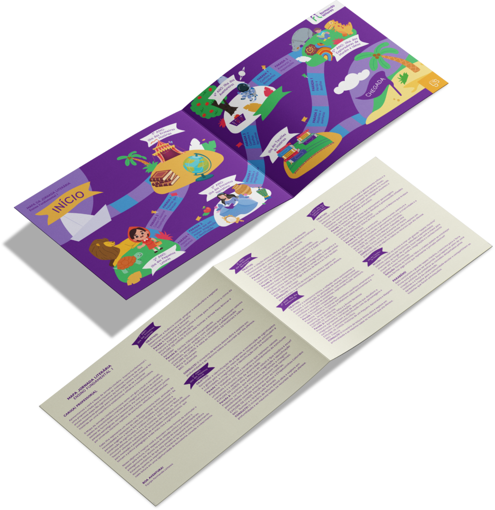 Os educadores contam ainda com 4 (quatro) Mapas da Jornada Literária em formato digital, organizados por segmento: para Educação Infantil, Ensino Fundamental – Anos Iniciais, Anos Finais e Educação de Jovens e Adultos (EJA). Esses mapas funcionam como recursos visuais de apoio que auxiliam na organização e na aplicação das atividades pedagógicas, tornando o planejamento mais intuitivo e envolvente.
