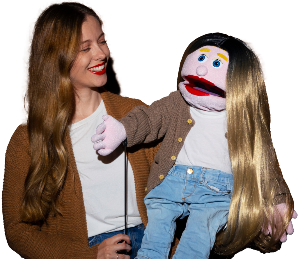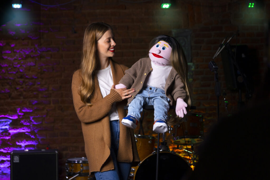 Encenações realizadas com personagens, promovendo interação lúdica e aproximando as crianças das histórias dramatizadas de forma dinâmica e expressiva.
